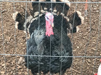 We currently have 3 turkeys which were hand reared so are very friendly. They love to sit on their perch or scratch around in their enclosure looking for grains and bugs.