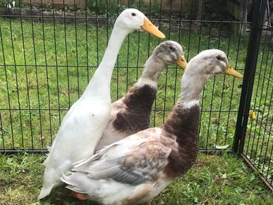 Meet Donald our beautiful Running Duck! He really can run fast! Also Daffy and Dave both Saxony Ducks and are very friendly. Dave is especially chilled!