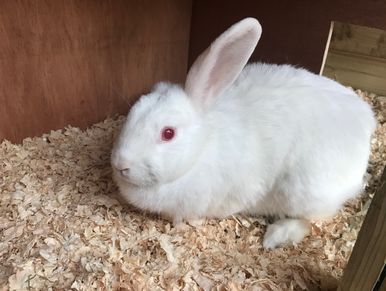 Cottontail is very calm and loves to be cuddled. She is also very fluffy! She loves to hop about when at home and stomp her feet in her run as she bounces around!